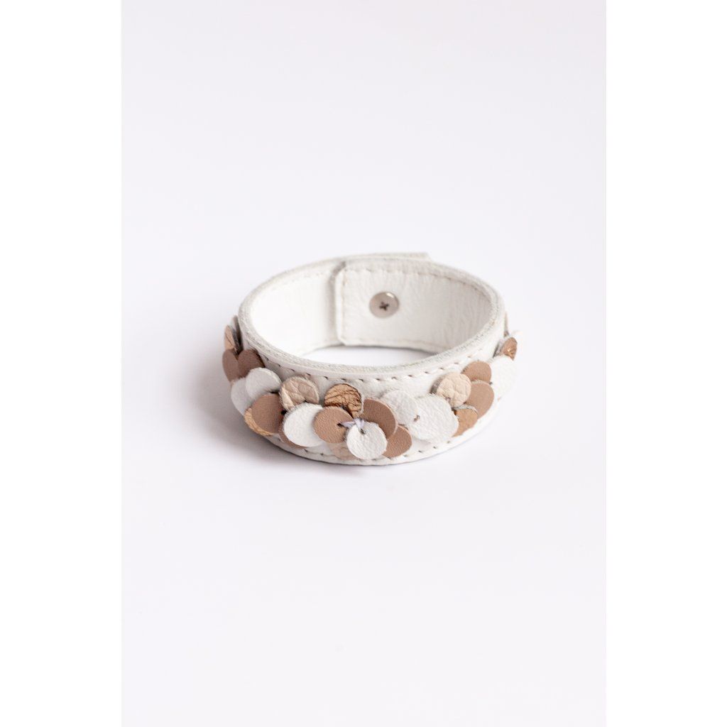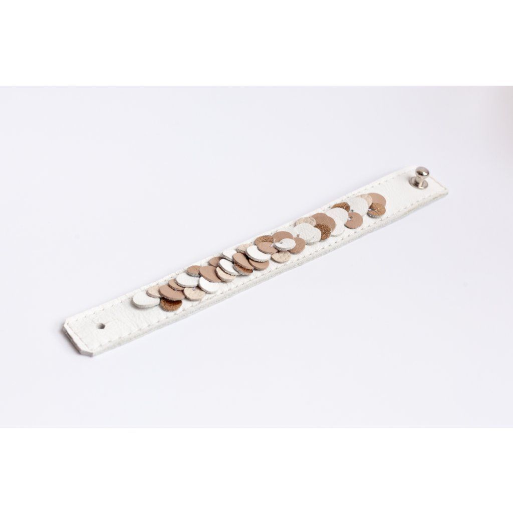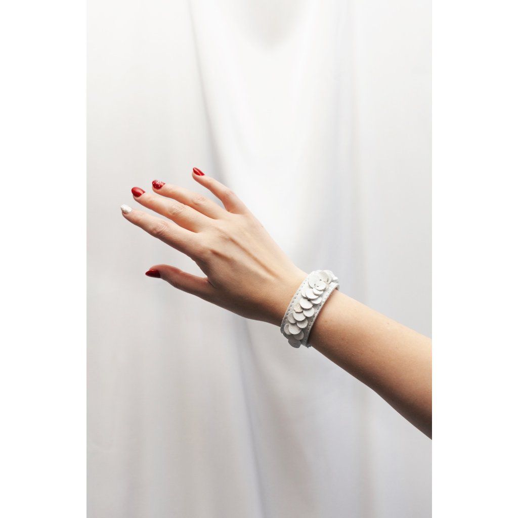 Stylový kožený náramek s originálním dekorem z kolekce Metráž BEAU. Při výrobě tohoto šperku bylo užito procesu tzv. upcyklace. Náramek je vyrobený ze zbytků kvalitních kůží z dílen českých designérů. METRÁŽE BEAU je řada designovaná přímo v naší dílně, tyto produkty tvoří základ našeho sortimentu.