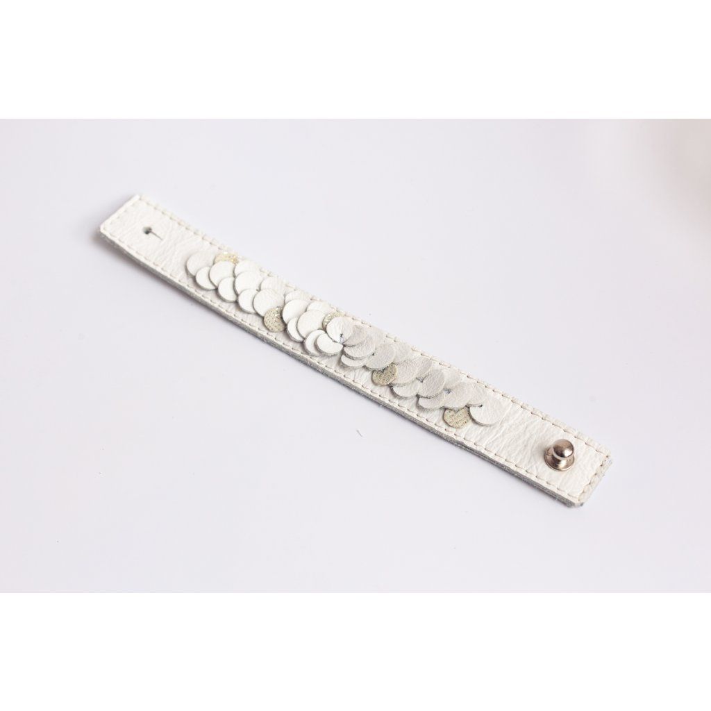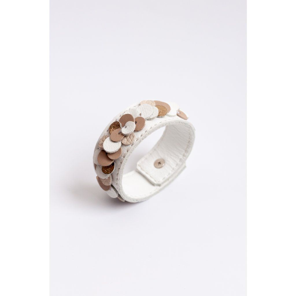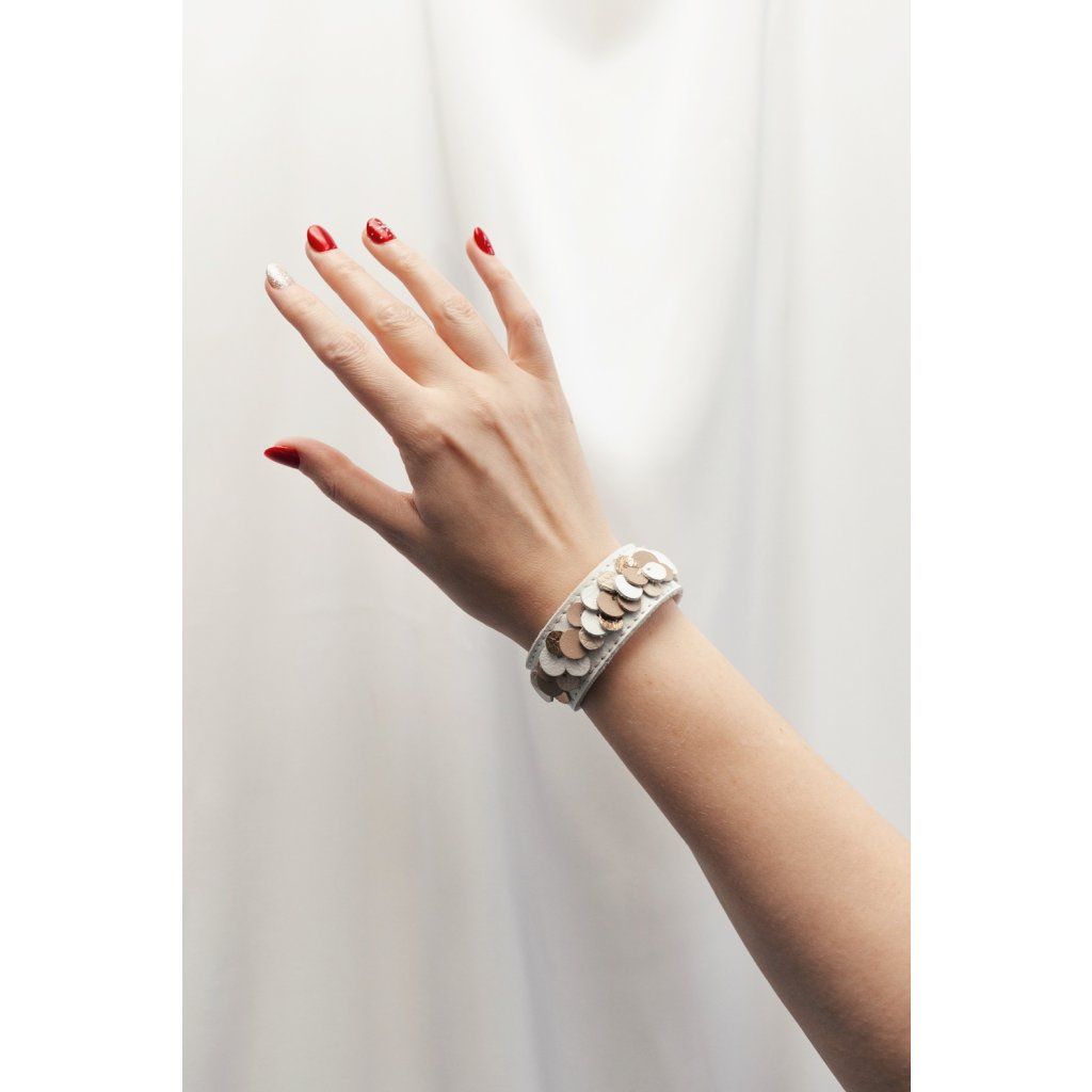 Stylový kožený náramek s originálním dekorem z kolekce Metráž BEAU. Při výrobě tohoto šperku bylo užito procesu tzv. upcyklace. Náramek je vyrobený ze zbytků kvalitních kůží z dílen českých designérů. METRÁŽE BEAU je řada designovaná přímo v naší dílně, tyto produkty tvoří základ našeho sortimentu.